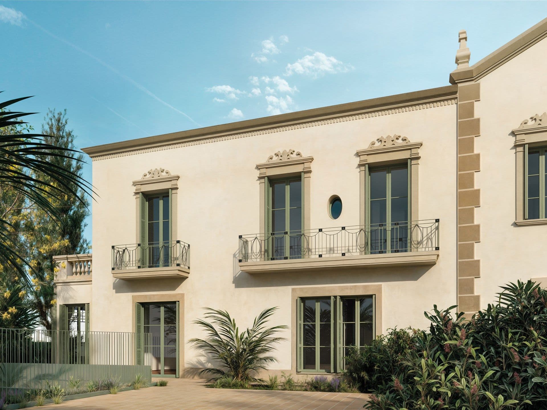 TORRE DE L'HEREU is a new residential project under construction that will offer 7 exclusive luxury flats for sale. Located in Sant Just Desvern, the Modolell farmhouse, is a modernist-inspired building, built in 1911, which is part of the Architectural Heritage of Catalonia. This project includes a complete rehabilitation of the building, preserving the architectural elements on the façades and roof, which give it its stately and quality character, in order to offer 3 new, exclusive and unique 4-bedroom dwellings with independent access and private garden. It also includes the construction of a new building, in a contemporary style and made with the finest materials, which will offer 4 new, exclusive and unique 4-bedroom dwellings with large terraces. The project is completed by a beautiful communal garden, with trees and some catalogued species, where the restored central fountain stands out. It also has a communal swimming pool and a basement with 16 parking spaces and storage rooms.