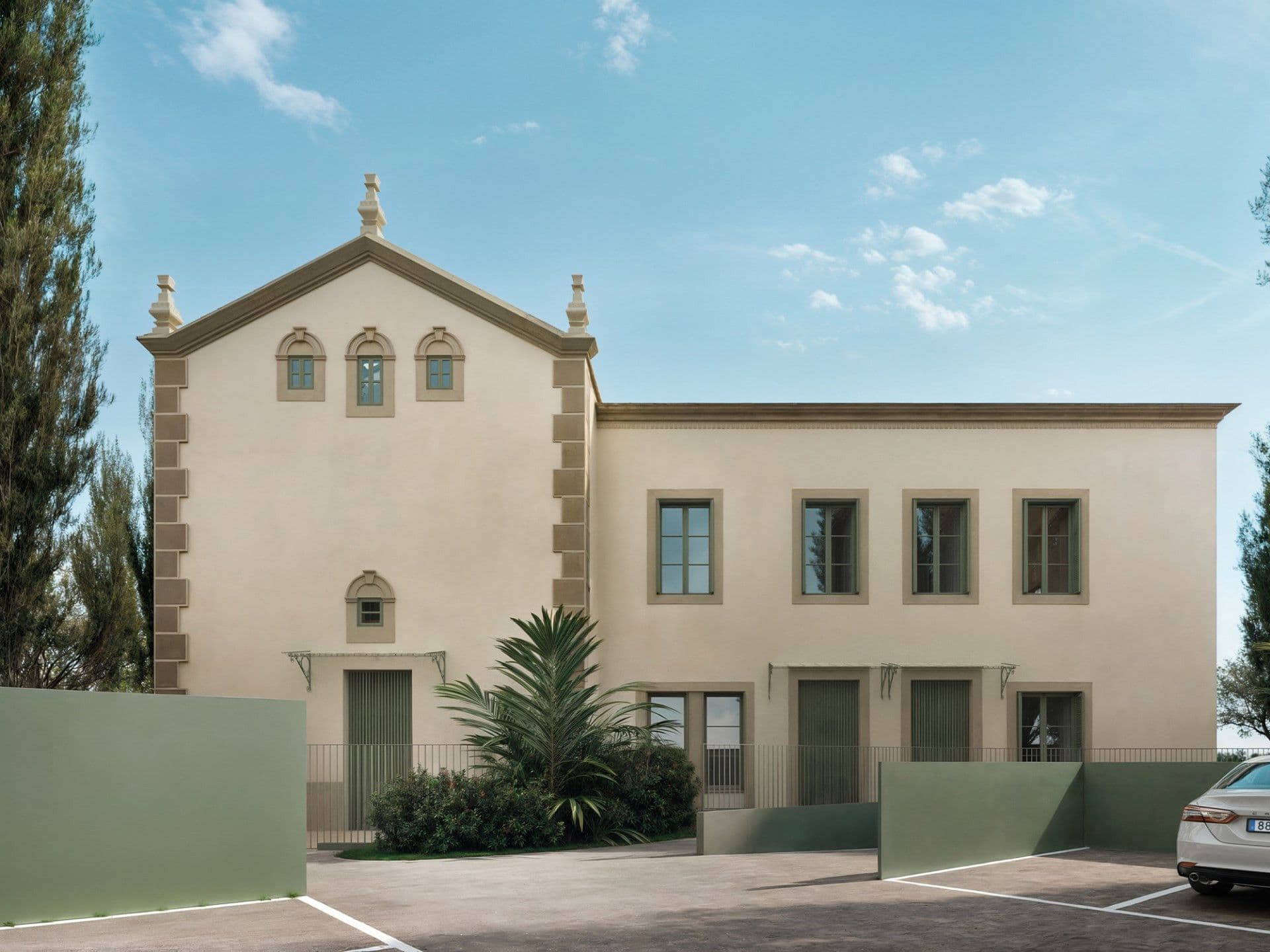 TORRE DE L'HEREU is a new residential project under construction that will offer 7 exclusive luxury flats for sale. Located in Sant Just Desvern, the Modolell farmhouse, is a modernist-inspired building, built in 1911, which is part of the Architectural Heritage of Catalonia. This project includes a complete rehabilitation of the building, preserving the architectural elements on the façades and roof, which give it its stately and quality character, in order to offer 3 new, exclusive and unique 4-bedroom dwellings with independent access and private garden. It also includes the construction of a new building, in a contemporary style and made with the finest materials, which will offer 4 new, exclusive and unique 4-bedroom dwellings with large terraces. The project is completed by a beautiful communal garden, with trees and some catalogued species, where the restored central fountain stands out. It also has a communal swimming pool and a basement with 16 parking spaces and storage rooms.